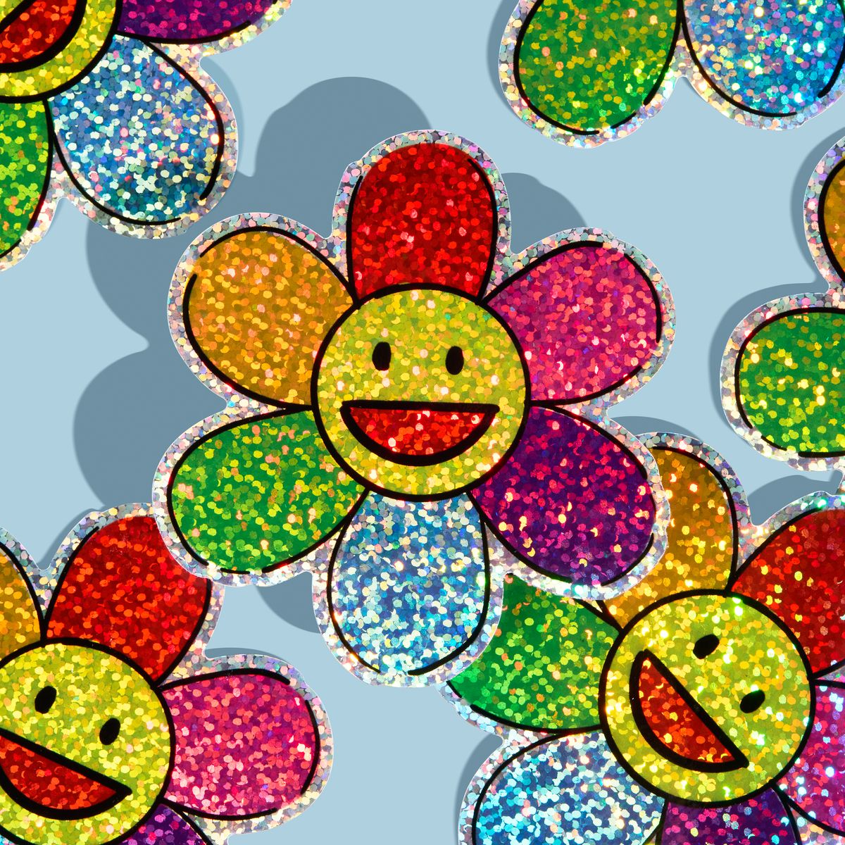 Glitter Stickers are printed on an iridescent, shiny vinyl that gives a rainbow sparkle effect. Stickerbeat recommends GLOSS lamination to maximize glitter appearance. MATTE lamination can diminish the appearance of glitter but is recommended for detailed artwork that requires high legibility, such as fine lines, logos or text.